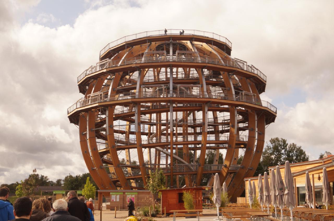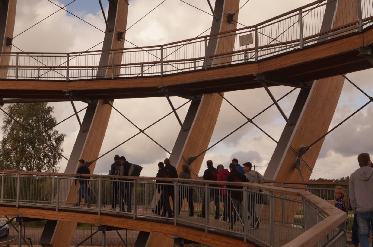 Weiter ging es zum Erlebnispark Steinberger See. Dort gab es die Möglichkeit, eine 40m hohe Holzkugel zu erklimmen. Wer wollte, konnte über eine Rutsche wieder hinunter auf den “Boden der Tatsachen” gelangen. Anschließend aßen wir im angrenzenden Parkrestaurant zu Mittag. Somit waren wir wieder gestärkt für den restlichen Tag.