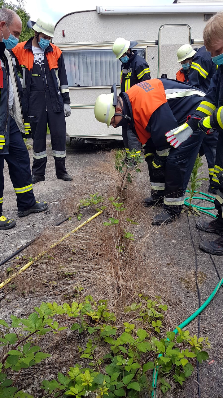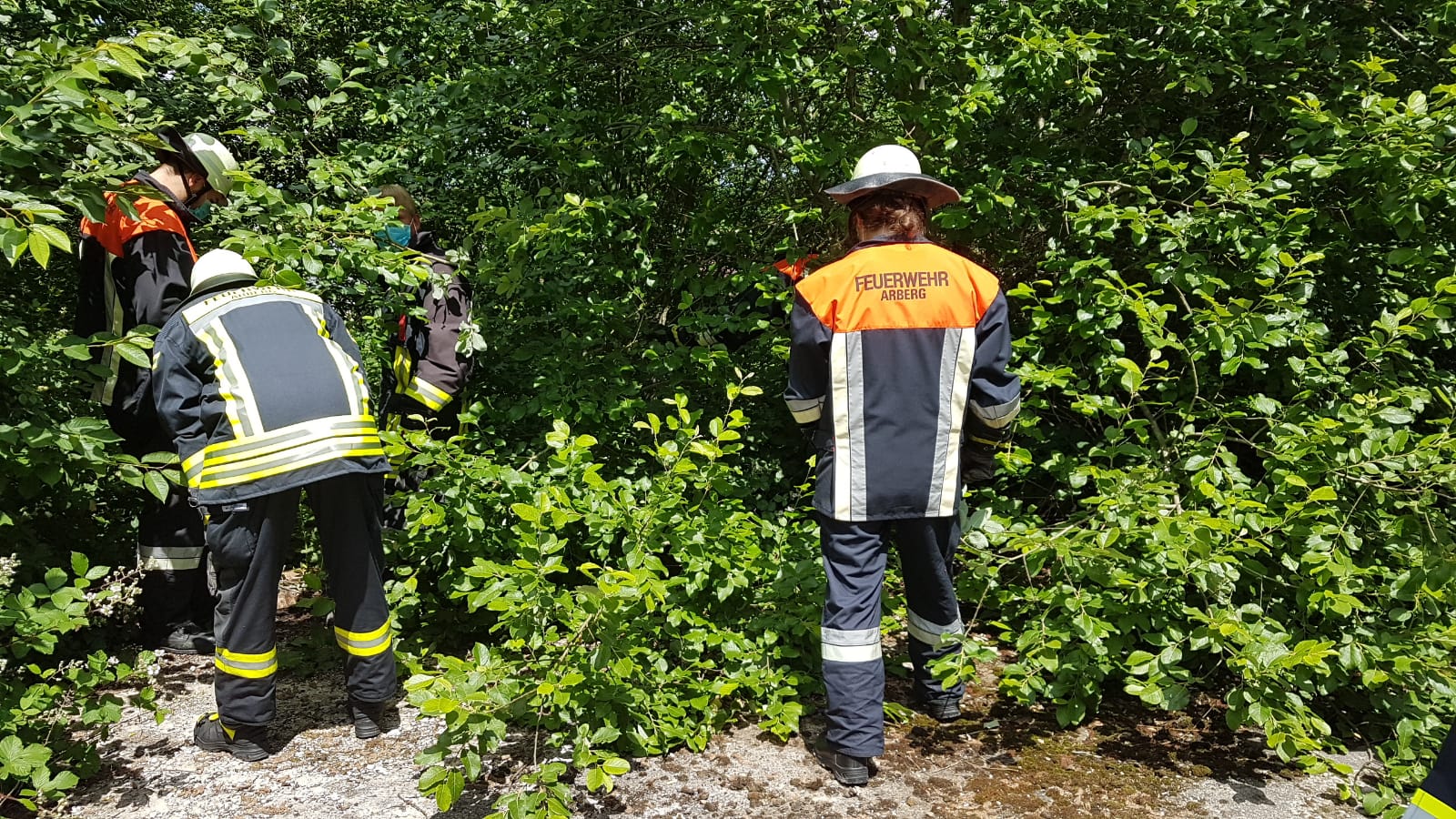Ein tierischer Einsatz rief uns am Sonntagnachmittag auf den Plan. Anwohner hatten in Arberg mehrfach eine ca. eineinhalb Meter lange Schlange gesichtet. Diese verkroch sich immer wieder im Gebüsch und unter einer Betonplatte.