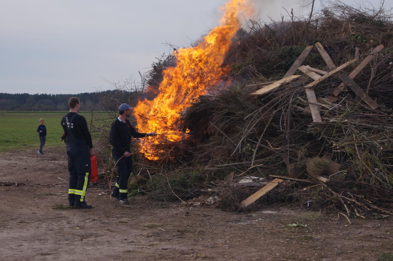 Ein herzliches Dankeschön an unsere Jugendwehrler für das gelungene Fest! Zu betonen ist, dass die Planung und Durchführung des Osterfeuers allein in der Hand der Jugendfeuerwehr liegt. Die Jugendlichen lernen somit, was es alles bedarf, eine öffentliche Veranstaltung zu organisieren - nicht ganz uneigennützig im Hinblick auf andere Termine wie z.B. das Maibaumaufstellen. Außerdem hatten alle sichtlich Spaß bei der Arbeit, und das ist die Hauptsache.
