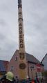 Pünktlich zum Abmarsch vom Feuerwehrhaus zum Kriegerdenkmal setzte der Regen ein. Dieser hielt - zu unserer großen Freude - die Arberger aber nicht davon ab, ihrer Feuerwehr beim Aufstellen des Maibaums zuzusehen. Unter den wachsamen Augen eines großen mit Regenschirmen bewehrten Publikums hievten die Feuerwehrleute den Baum unfallfrei in seine Verankerung - was mit einer Runde Applaus quittiert wurde.