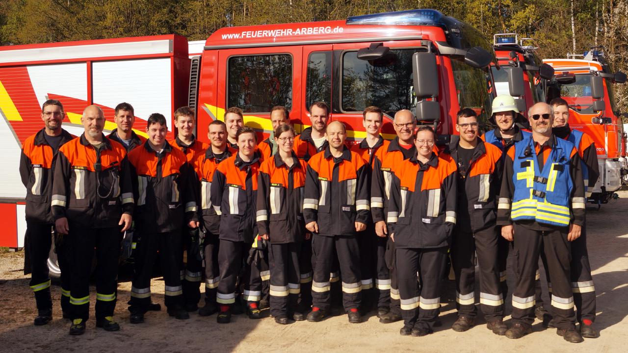 19 Arberger Feuerwehrleute nahmen an der Katastrophenschutzübung Flammende Fichte teil. Die Teilnehmerinnen und Teilnehmer fuhren mit ihren vier Fahrzeugen den Bereitstellungsraum am Krummweiher in Königshofen an. Von dort aus wurden Einheiten koordiniert und zu ihren jeweiligen Einsatzorten disponiert.